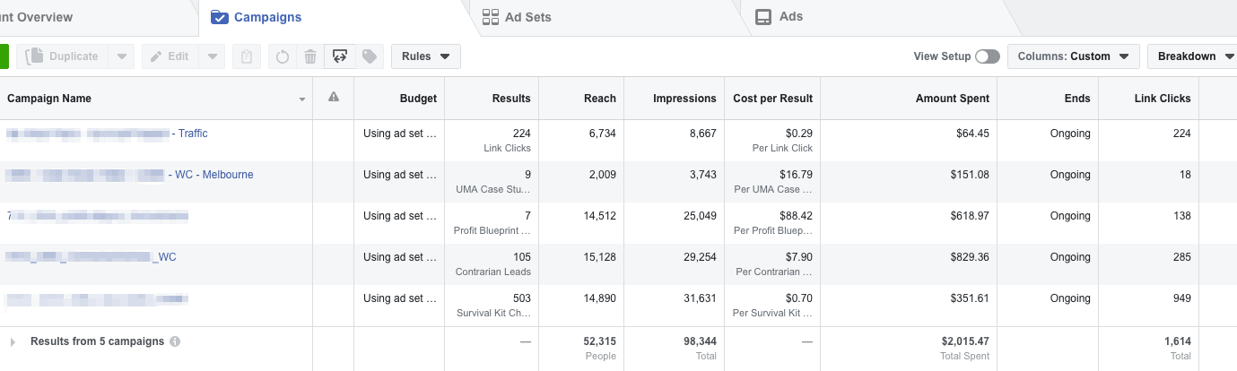 A financial advisory company came to us because they were not generating enough quality leads. They had tried to advertise on Facebook before and were almost convinced that it didn’t work because their lead cost was too high. We asked what lead cost they would be happy with and they responded that they could afford to have a CPL (cost per lead) of $7-$15 because they were a ticket service provider.